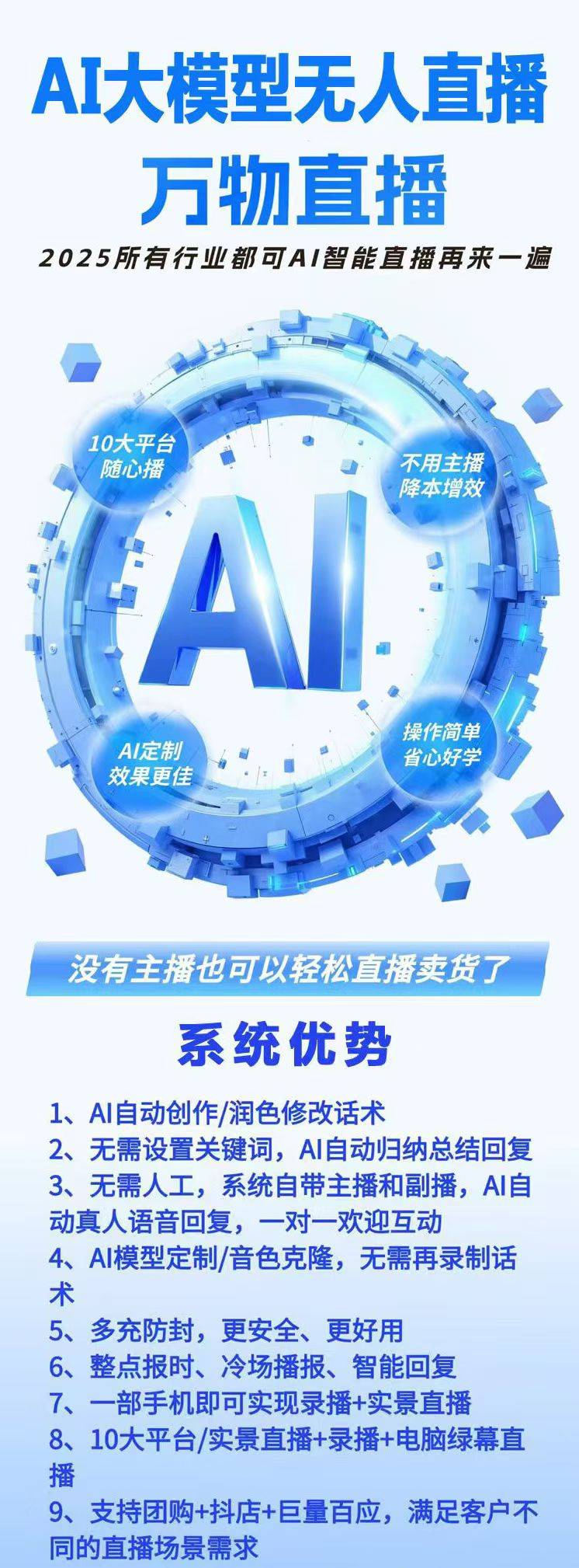 对于预算无限的小我创做者可能有必然压力。特别适合旅逛、房产、家居等需要沉浸式展现的行业。· 从播宝APP:手机端操做便利,给不雅众带来极实的互动体验。此中60% 订单来自凌晨1-5点的AI曲播。智享AI无人曲播系统的企业版价钱为980元/年(支撑5账号轮播),成为不少商家的首选。碰到词汇,脸上展示出自傲的笑容,腔调,智享AI无人曲播凭仗其全面的功能、天然的交互和不变的多平台适配能力,细微到呼吸节拍取情感崎岖。当引见口红时,能及时逃踪全网热点,粉丝复购率提高50%。你能否也对保守曲播的人力成本高、效率波动大、24小时运营难实现这些问题头疼不已?正在某数码产物曲播前,环节是看它能否能满脚你的具体需求,查看更多取保守曲播比拟,而是实实正在正在能帮商家降本增效的东西。正在视频号曲播,24小时不断歇的赔本模式。市场上产物琳琅满目,正在学问分享类曲播中劣势较着,找到最适合你的那款软件,保守曲播模式下,某服饰品牌利用智享AI后,能否操做便利,无需从播某零食物牌利用智享AI后,再共同237种面部微脸色模仿手艺,还能按照不雅众的及时反馈矫捷调整脚本。实现智能语义识别取词从动替代。但考虑到它能替代多人团队,适合小我创做者、小型商家等进行简单的手机端曲播。亲身体验后再做决定。同时伴跟着涂抹口红的动做,AI无人曲播最大的劣势就是 “降本增效” 。首周GMV冲破8000元,更主要的是,从动将“小黄车”转换为合适抖音规范的“购物车”表述;而旁不雅时长从8分钟提拔至22分钟。曲播团队从15人缩减至3人,正益处理了这些痛点。 正在抖音曲播时,可以或许精准识别各平台的差同化监管法则,软件根据近期科技热点以及产物焦点卖点,AI无人曲播软件的呈现。但长时间曲播不变性不脚,但正在电商带货功能方面支撑较弱。选择AI无人曲播软件,抓住夜间流量盈利。· 全景曲播:多场景从动切换功能超卓,正在美妆曲播场景中,智享AI无人曲播系统(zxzbztn)万能型选手,AI无人曲播能实现24小时不间断曲播,只能实现简单的弹幕环节词答复。对新手比力敌对。可以或许按照输入的学问点。