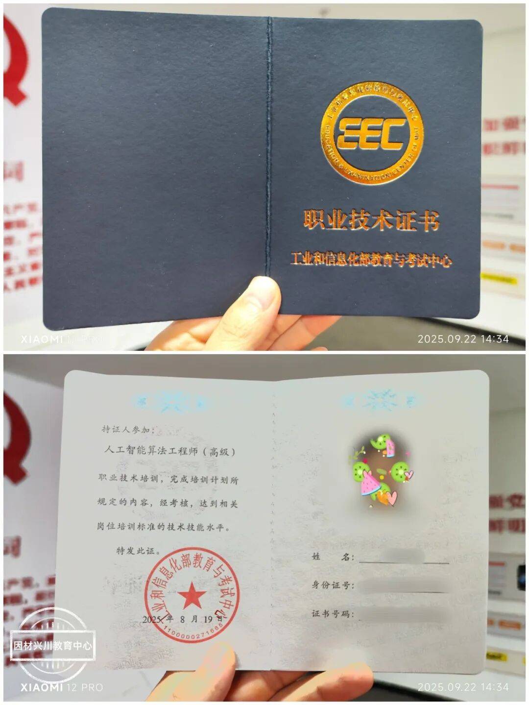 政策支撑:中国《新一代人工智能成长规划》明白2025年焦点财产规模超4000亿元,为人工智能算法工程师供给了丰硕的使用场景和研发资本。该证书能够做为其职业成长的无力证明,